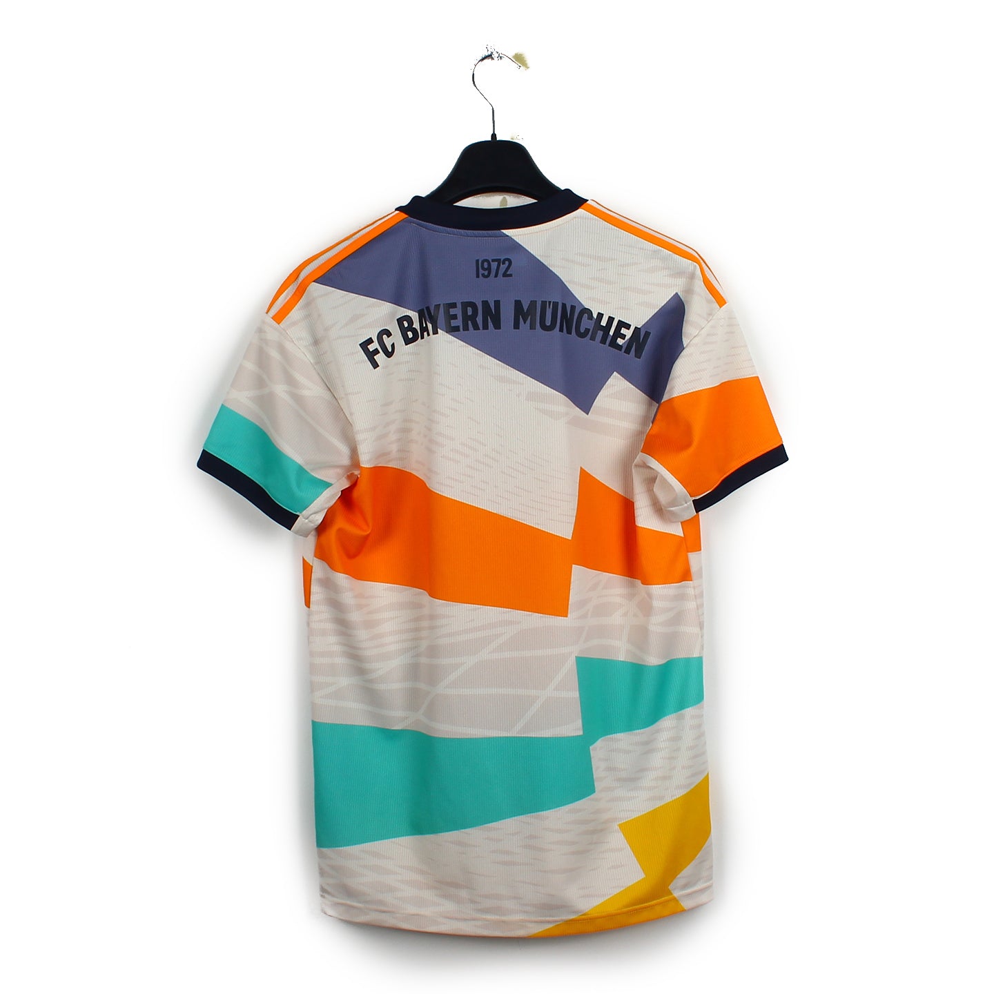 Histoire : Maillot fourth porté lors d'une saison tendue chez les Bavarois. Julian Nagelsmann sera remercié et remplacer par Thomas Tuchel. Après l'élimination en Ligue des Champions, le Bayern sauvera sa saison sur le fil en remportant la Bundesliga.