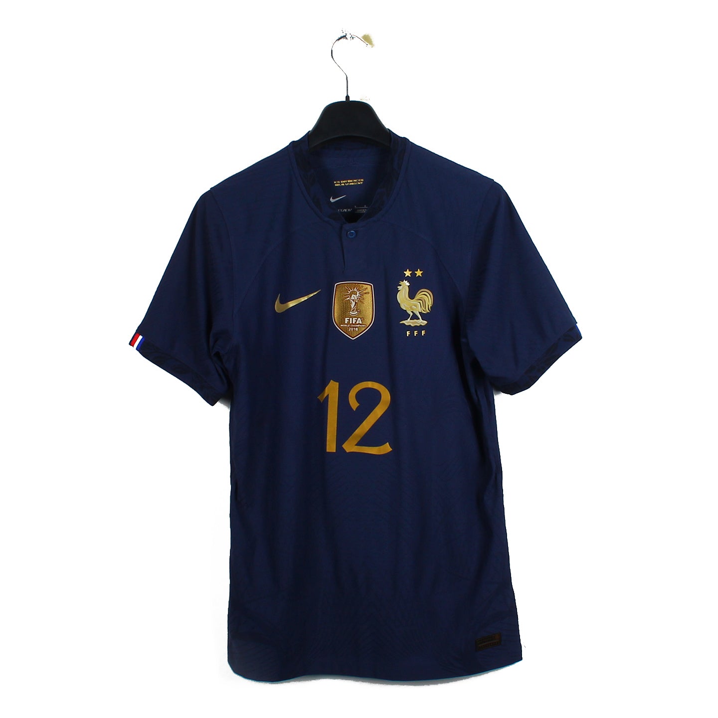 Histoire : Maillot domicile porté lors de la Coupe du Monde 2022 où les Bleus seront vaincus par l'Argentine de Leo Messi aux tirs au but après une rencontre historique.