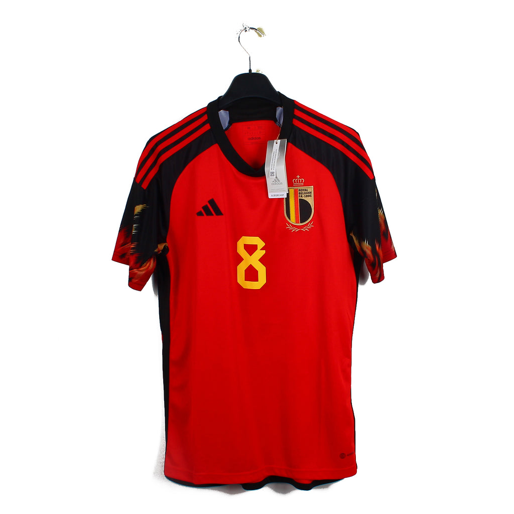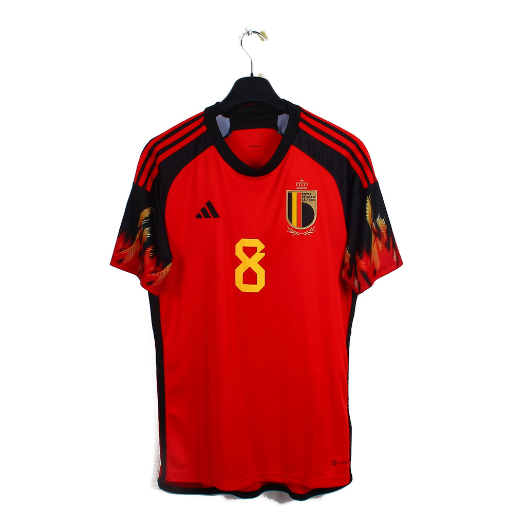 Histoire : Maillot domicile porté par les Belges lors de la Coupe du Monde 2022 où ils se verront éliminer en poules derrière le Maroc et la Croatie.