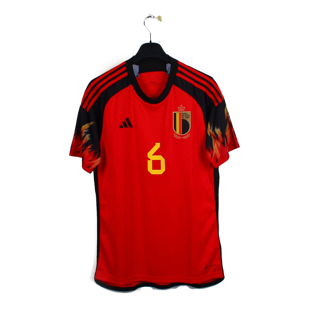Histoire : Maillot domicile porté par les Belges lors de la Coupe du Monde 2022 où ils se verront éliminer en poules derrière le Maroc et la Croatie.