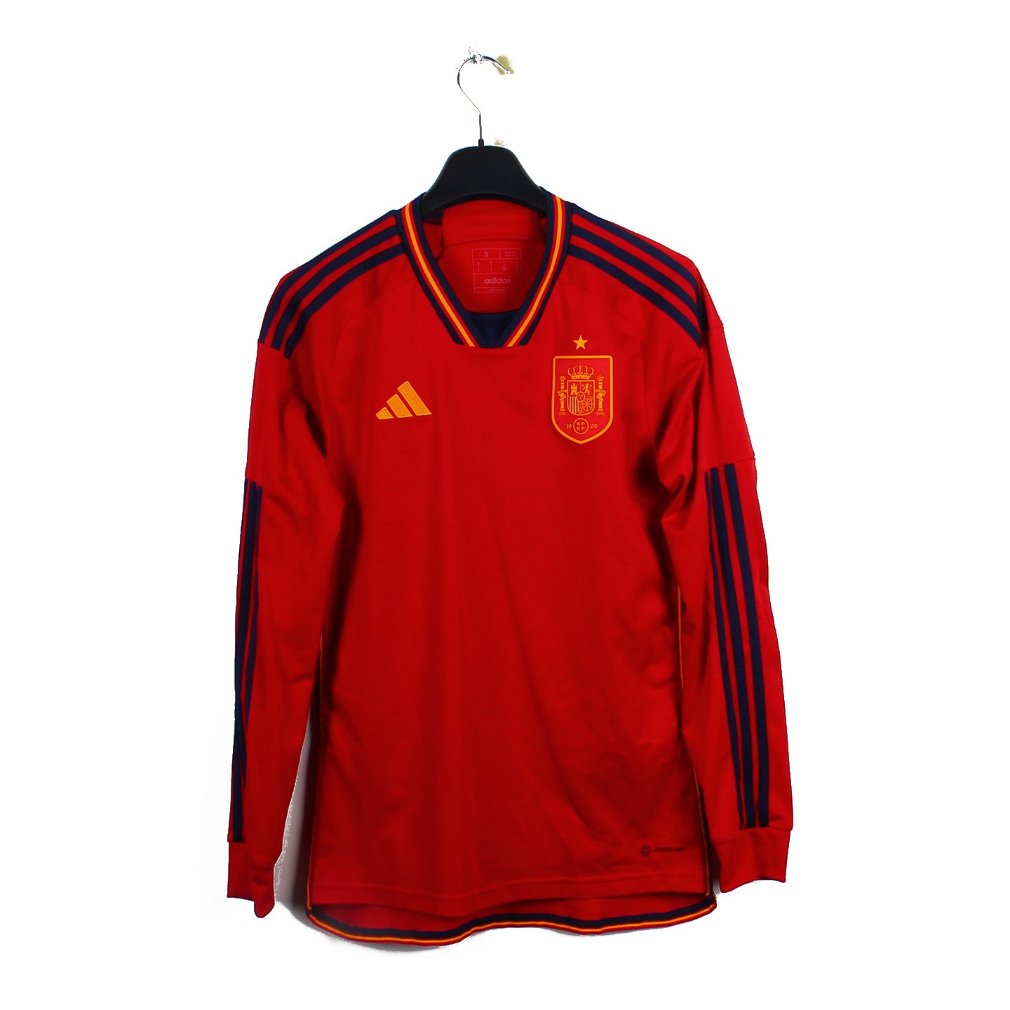 Histoire : Maillot domicile porté par les Espagnols lors de la Coupe du Monde 2022 où ils sortiront en 8ème de finale contre le Maroc aux tirs au but.