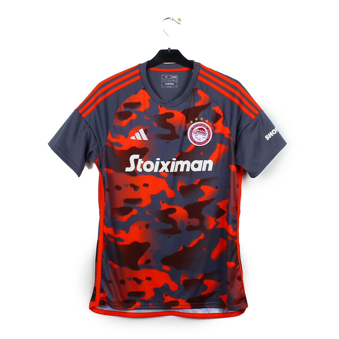 Histoire : Maillot third porté lors d'une saison marquée pour l'excellent parcours européen où l'Olympiakos remportera la finale de Conférence League face à la Fiorentina.