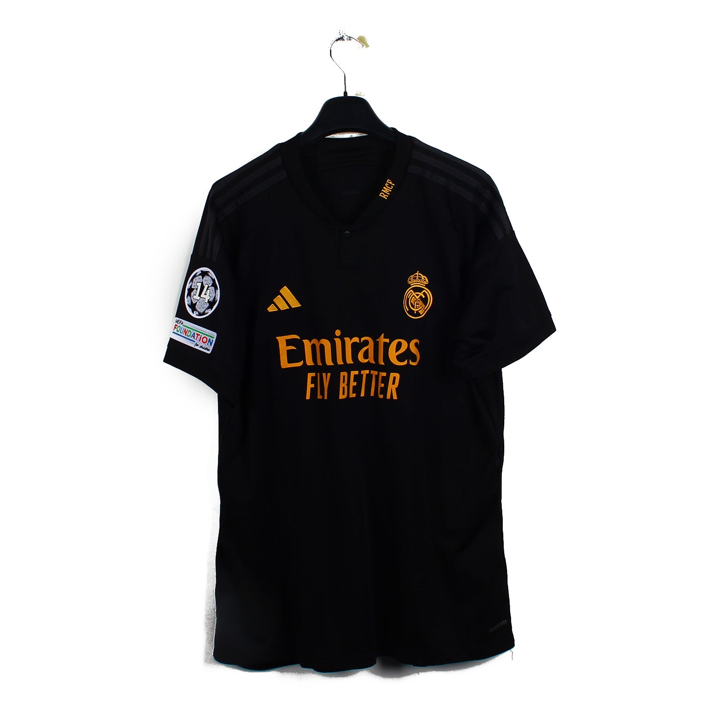Histoire : Maillot third porté par les hommes de Carlo Ancelotti lors de la saison 2023/24. Saison ou ils gagneront la ligue des champions.