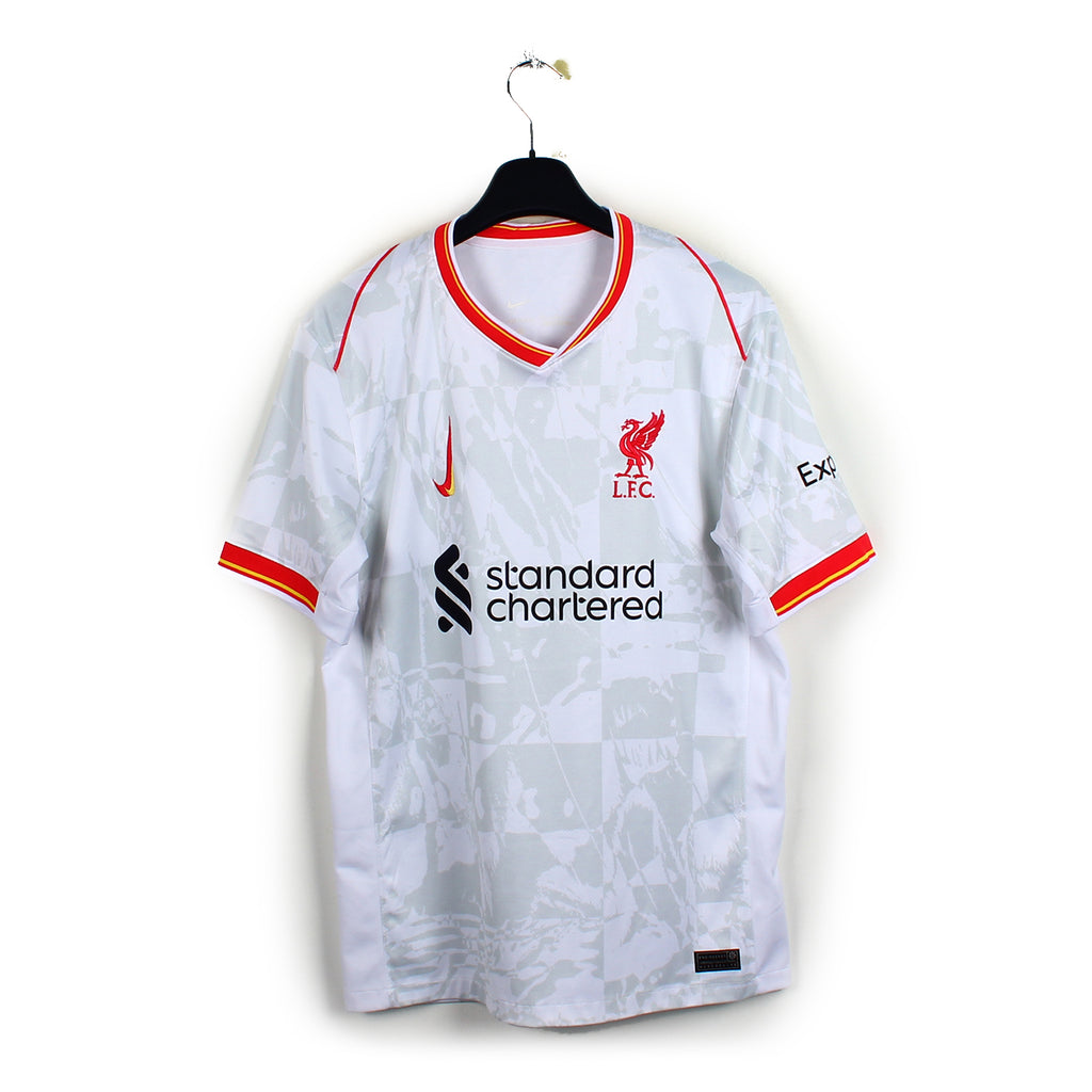 Histoire : Maillot third porté par les Reds lors d'une saison finie à la 1ère place de Premier League. Ils seront éliminés en 8ème de Champions League par le PSG.