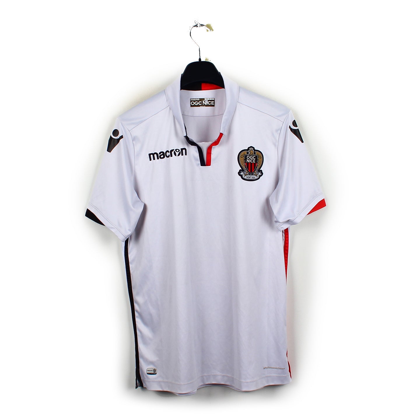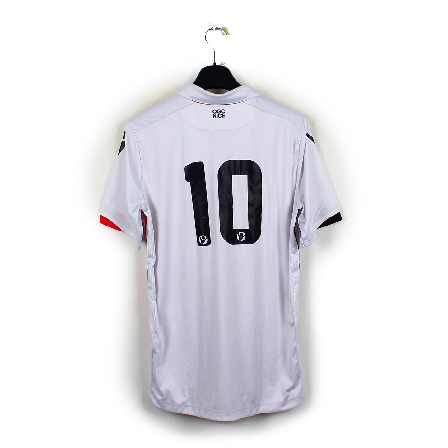 Histoire : Maillot extérieur porté par le Nice de Lucien Favre lors d'une saison moyenne où lui et ses hommes finiront à la 8ème place du championnat. Ils seront éliminés en 16ème de finale de l'Europa League.