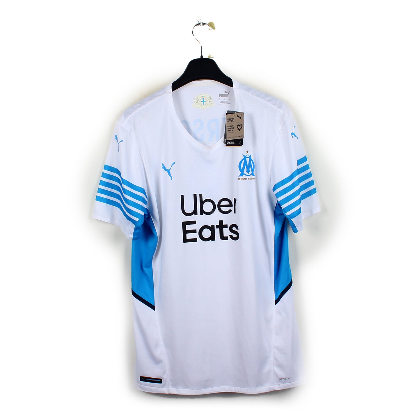 Histoire : Maillot domicile porté sous Jorge Sampaoli lorsque l'OM terminera 2ème de Ligue 1. En Europe, les Olympiens iront jusqu'en 1/2 finale de Ligue Europa Conférence où ils s'inclineront contre le Feyenoord Rotterdam.