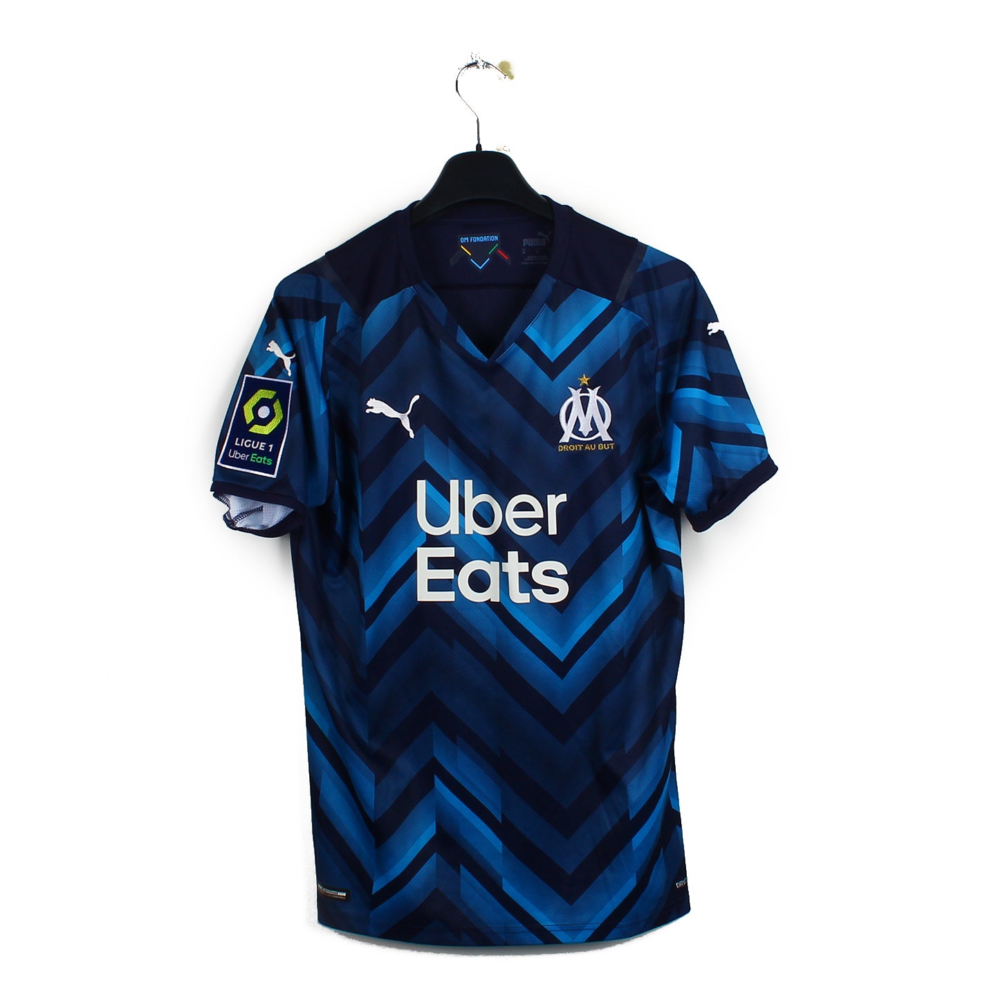 Histoire : Maillot extérieur porté sous Jorge Sampaoli lorsque l'OM terminera 2ème de Ligue 1. En Europe, les Olympiens iront jusqu'en 1/2 finale de Ligue Europa Conférence, battus par le Feyenoord.