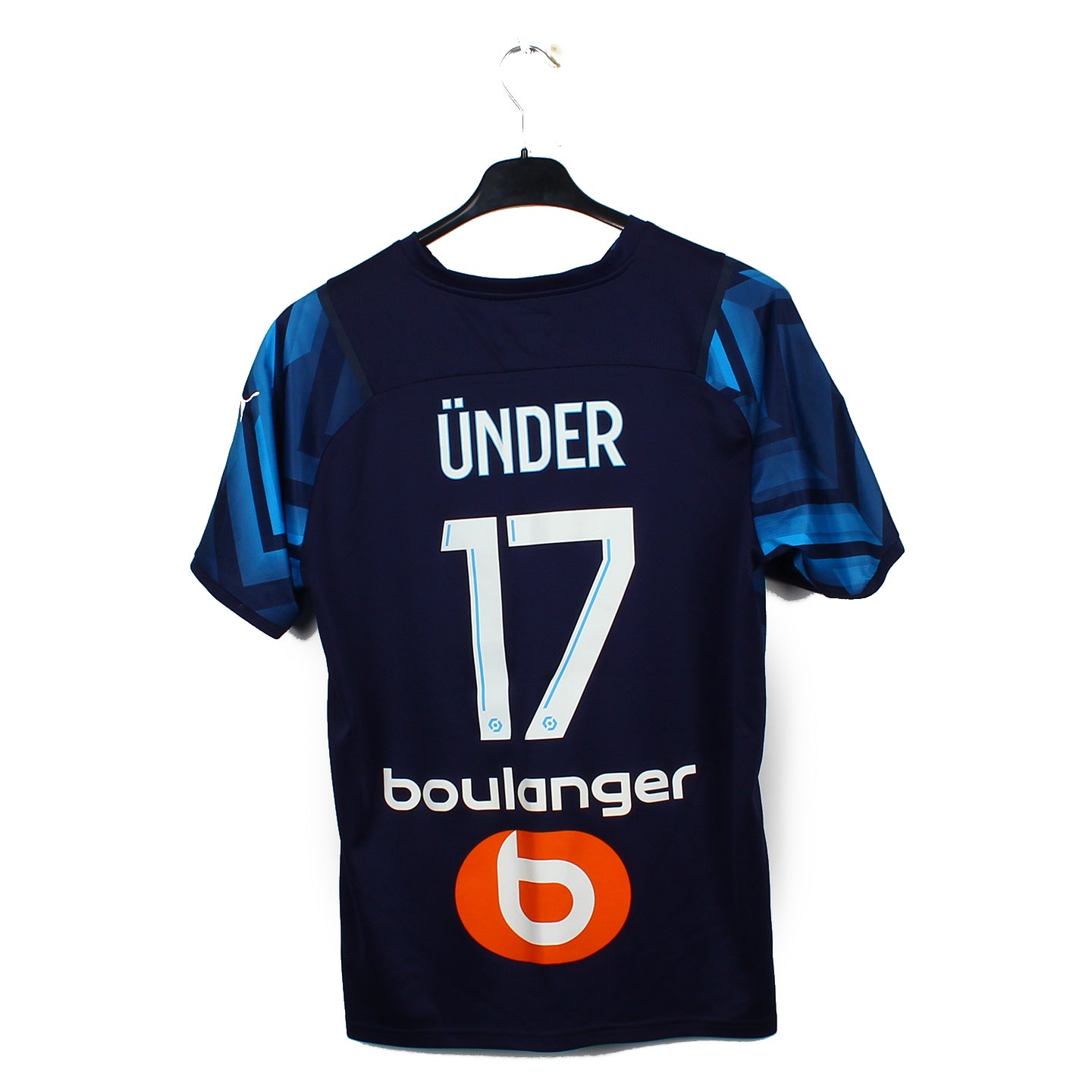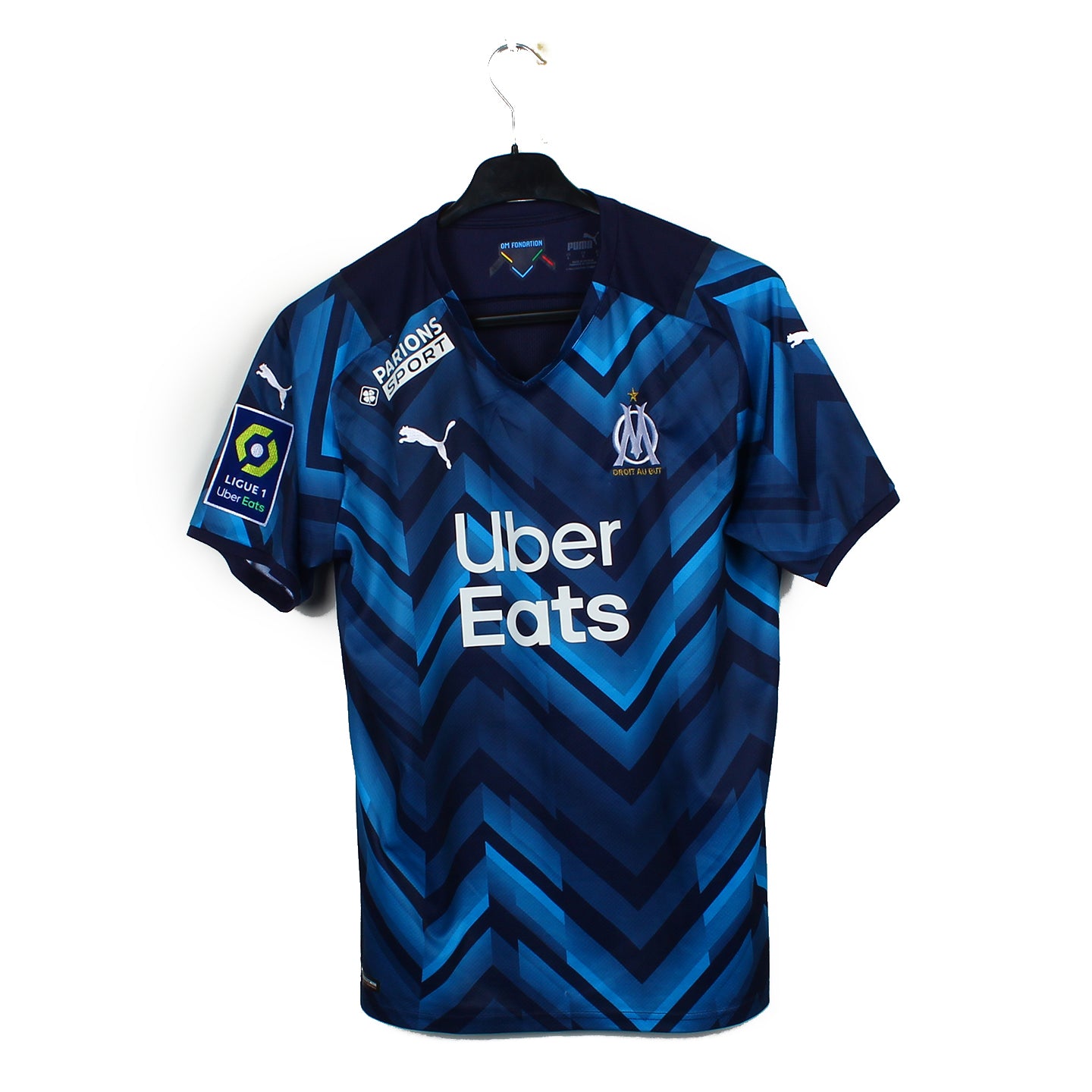 Histoire : Maillot extérieur porté sous Jorge Sampaoli lorsque l'OM terminera 2ème de Ligue 1. En Europe, les Olympiens iront jusqu'en 1/2 finale de Ligue Europa Conférence où ils s'inclineront contre le Feyenoord Rotterdam.