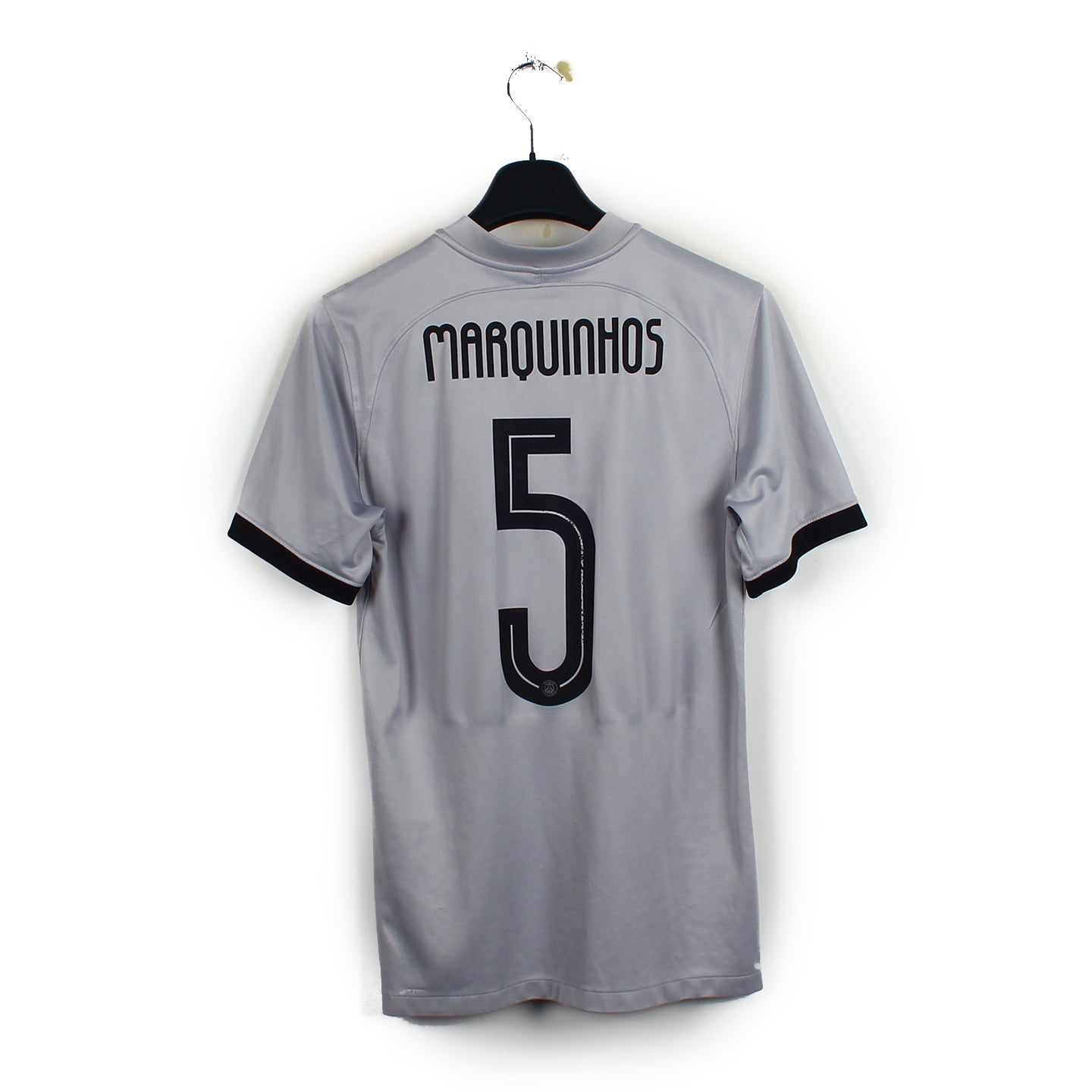 Histoire : Maillot extérieur porté lors d'une saison où les parisiens de Christophe Galtier ne remporteront que la Ligue 1. Ils seront sortis par le Bayern Munich en 8ème de finale de Champions League.