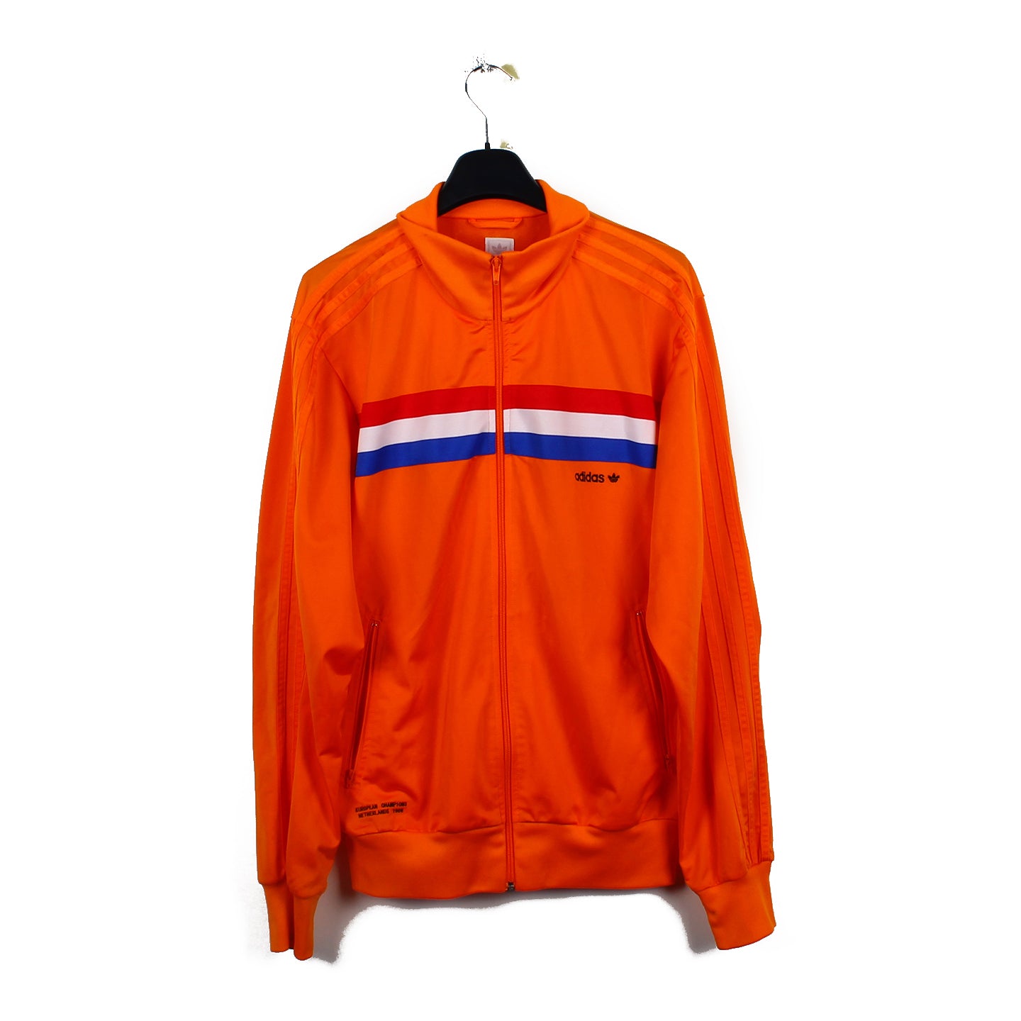 Histoire : Veste training portée par la Hollande lors de l'Euro 2008 organisé entre l'Autriche et la Suisse. La Oranje gagnera brillamment 4-0 et 3-0 contre la France et l'Italie en phase de groupe. Sneijder sera élu homme du match lors de ces deux rencontres. L'équipe dirigée par Marco van Basten sera éliminée en quart de finale 3-1 par la Russie.