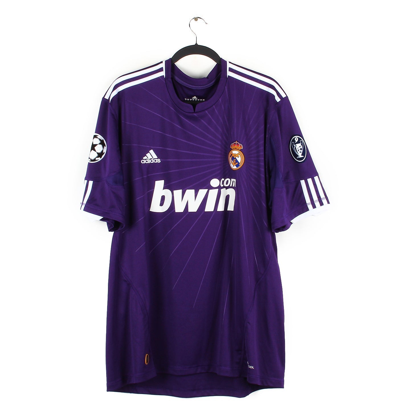 Le maillot en détail : Rare maillot third du Real dans un excellent état général. Logo Adidas brodé, l'écusson du Real est quant à lui en feutrine. Flocage sponsor intact. Présence des patchs.