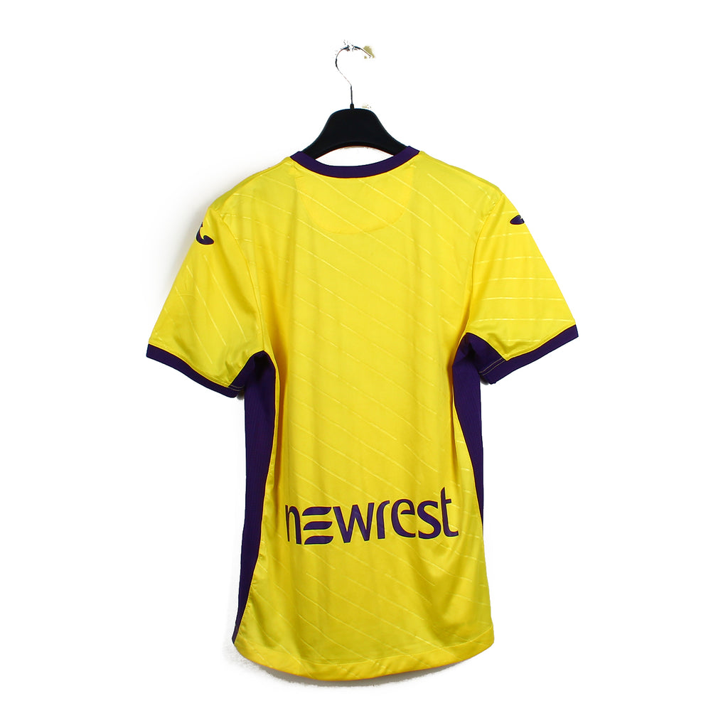 Histoire : Maillot extérieur porté lors de la première année de reconstruction en Ligue 2. Toulouse terminera 3e mais échouera en barrages face à Nantes lors d'une double confrontation où ils peuvent avoir des regrets.