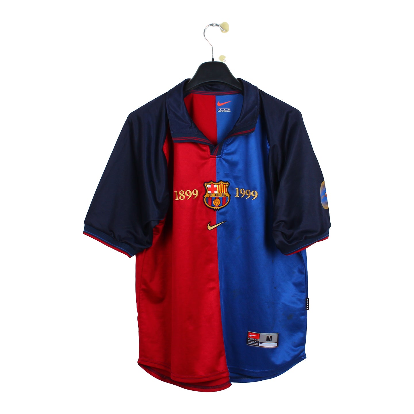 Histoire : Maillot domicile porté par le Barca à l'occasion du centenaire du club. Les catalans seront privés de titre. Second en Liga, ils seront éliminés en demi-finale de Coupe et Ligue des Champions.