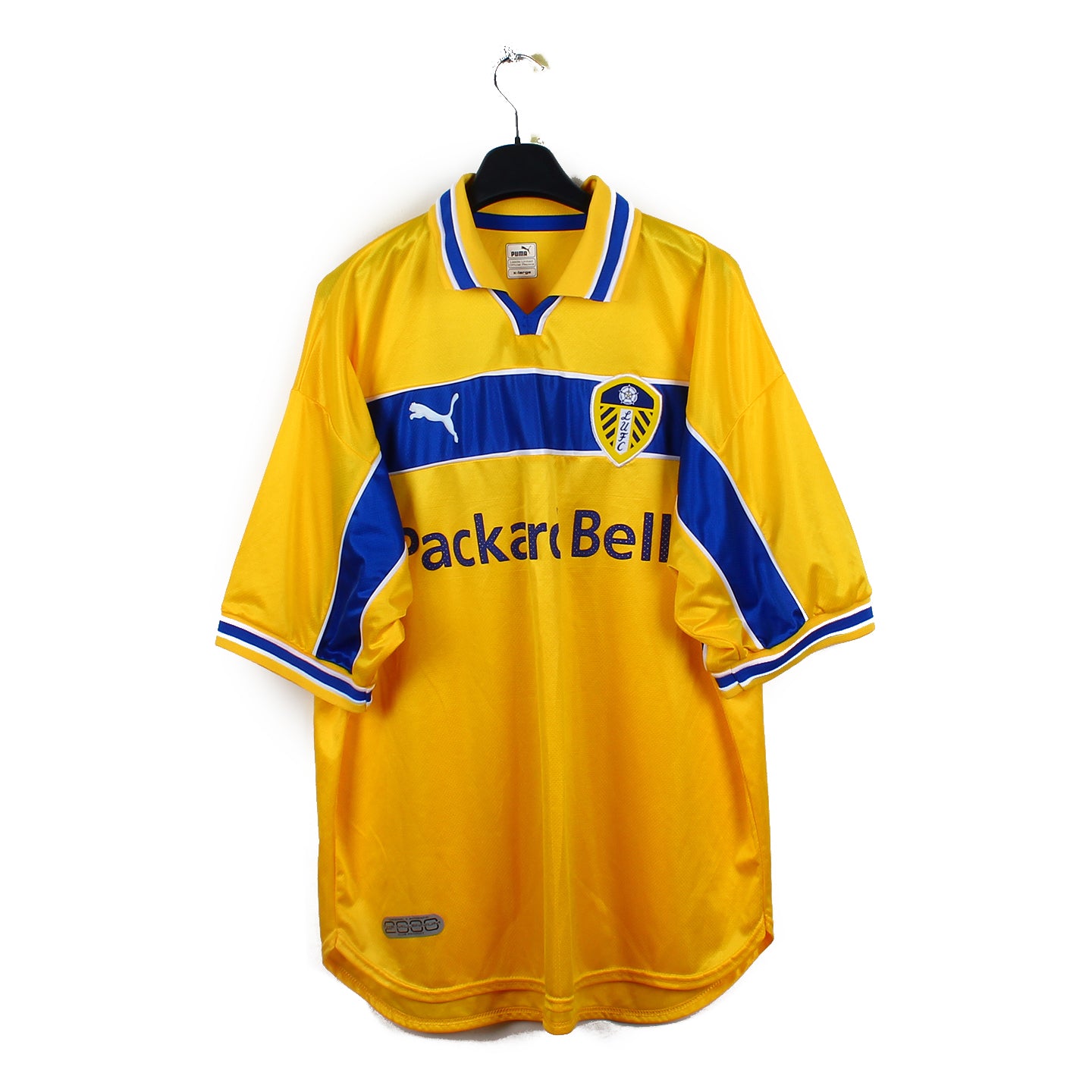 Histoire : Maillot third porté lors d'une superbe saison pour les Peacocks. Harry Kewell et ses partenaires feront vibrer Elland Road en s'installant sur le podium de Premier League. Leeds terminera à la 3ème place, notamment grâce aux 19 buts de Michael Bridges. Alf Inge Haaland, père de Erling Braut quittera le club en fin de saison pour rejoindre Manchester City.