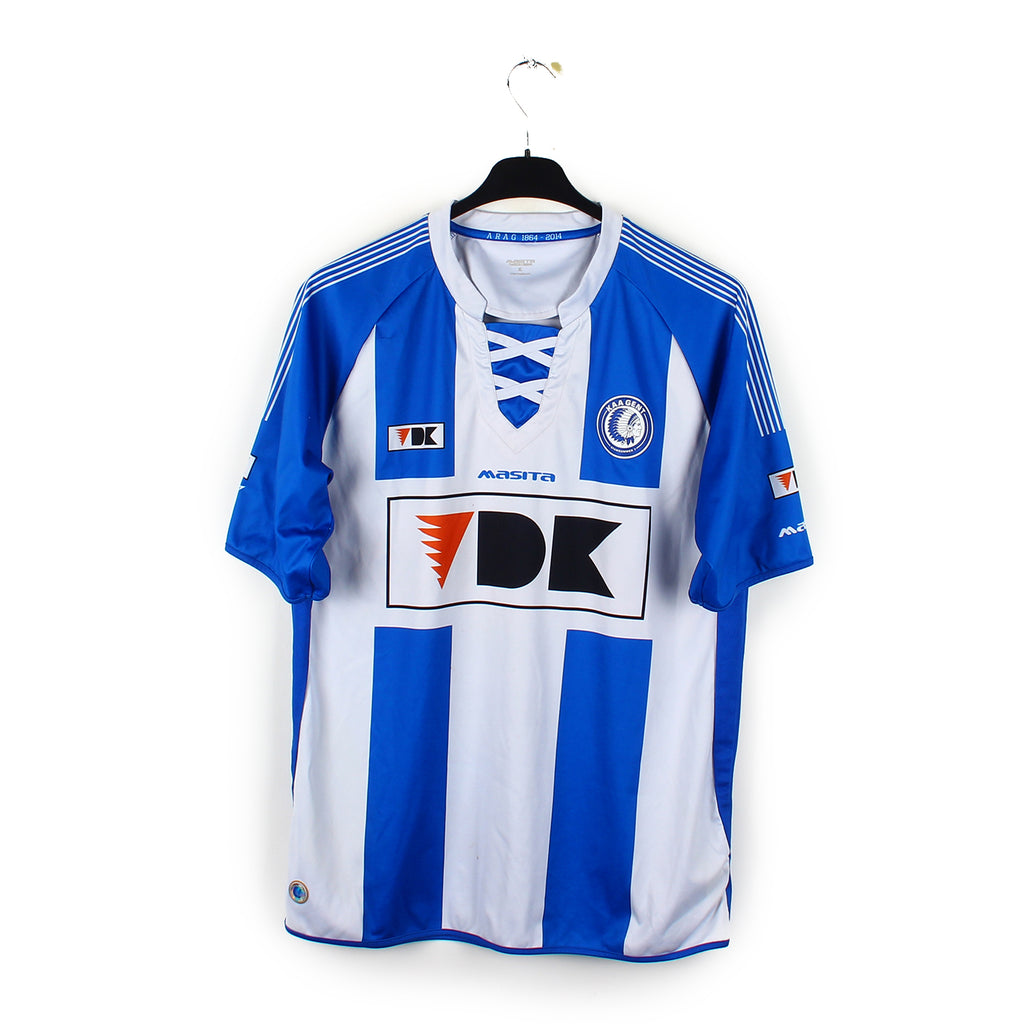 Histoire : Maillot domicile porté par les joueurs du KAA Gent lors d’une saison où ils finiront 3ème de la saison régulière du championnat de Belgique. Lors des playoffs, ils finiront à la 4ème place et décrocheront une place pour les barrages de C3.