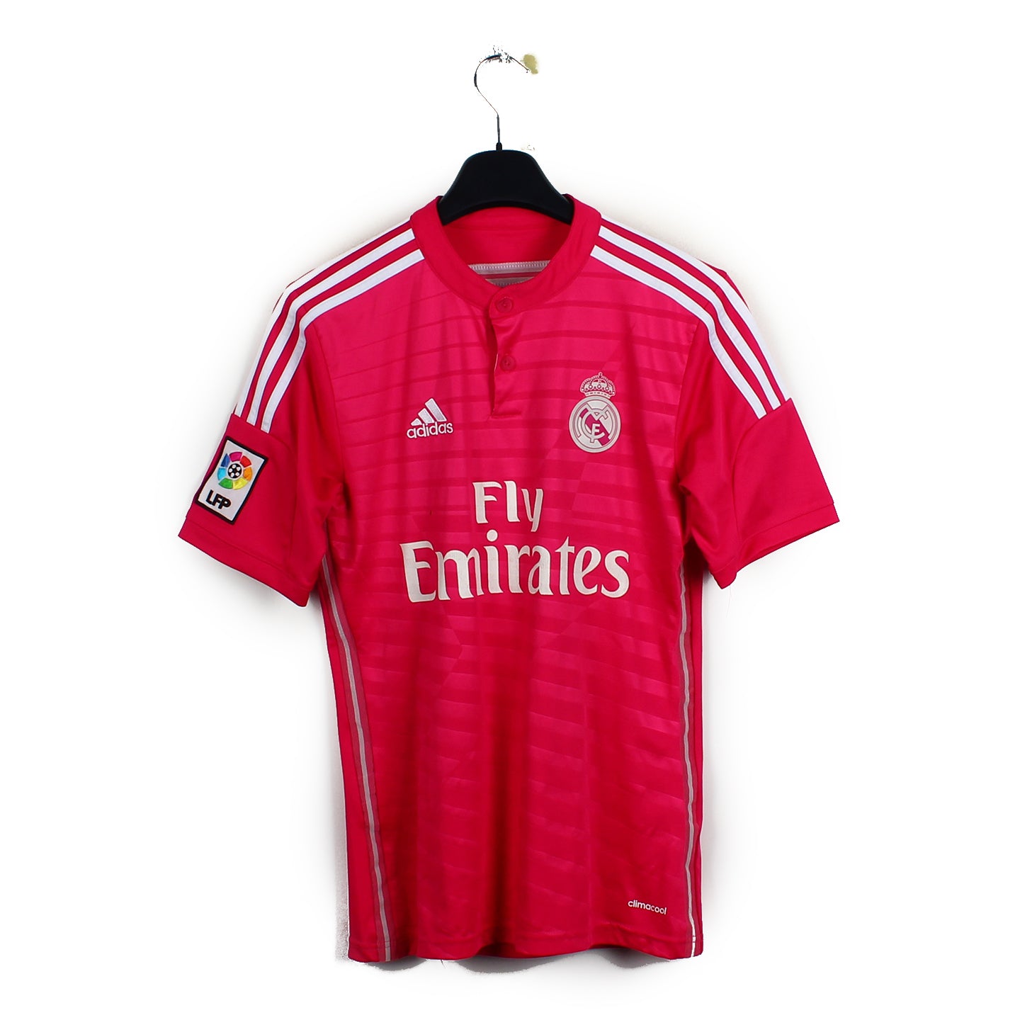 Histoire : Maillot extérieur porté par les Merengues sous les ordres de Carlo Ancelotti lorsqu'ils termineront second de Liga avec un total de 92 points. Sur la scène européenne, le club atteindra les demi-finales avant d'être éliminé par la Juventus. Cristiano Ronaldo réalisera une saison exceptionnelle en inscrivant 61 buts toutes compétitions confondues.
