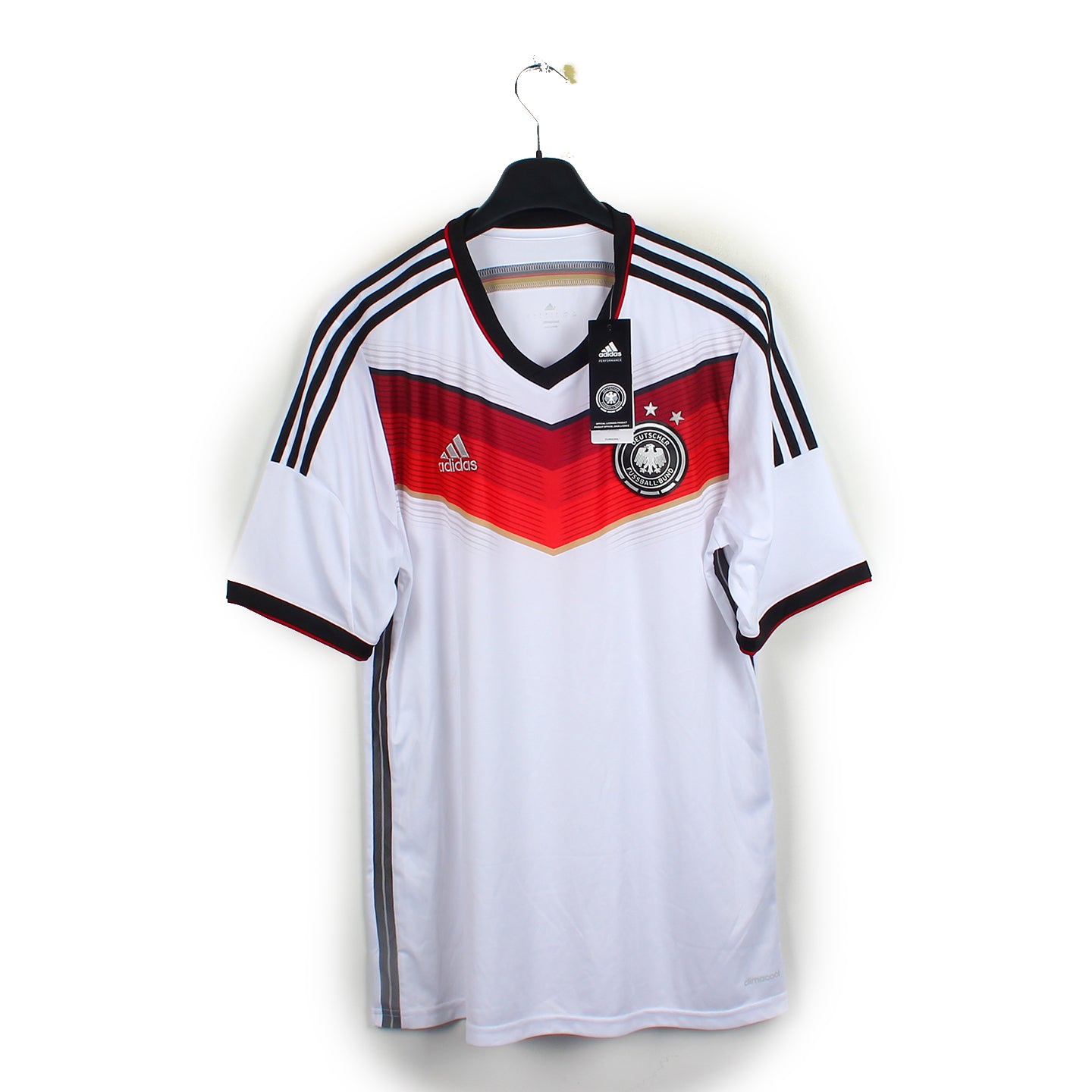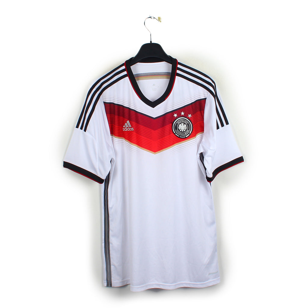 Histoire : Maillot domicile porté par les Allemands lors de la Coupe du Monde 2014 où ils remporteront leur 4ème étoile face à l'Argentine.