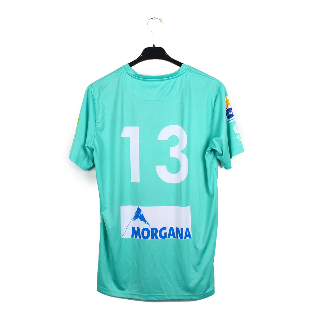Le maillot en détail : Maillot porté/préparé par un numéro 13, possiblement avec l'équipe réserve, en excellent état. Les éléments sont directement incrustés au tissu.