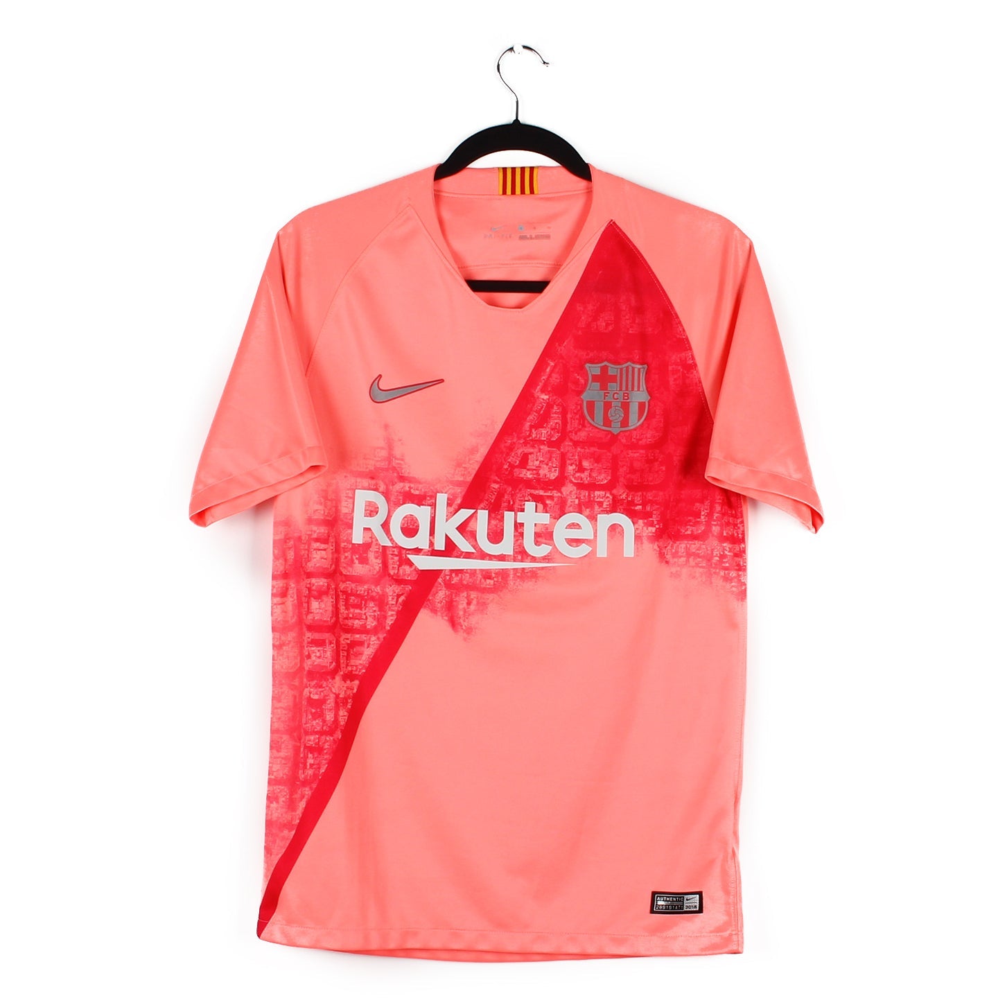 Histoire : Maillot third porté par les hommes d'Ernesto Valverde une saison où ils remporteront le championnat et la SuperCoupe d'Espagne. En Europe, après une phase de poule passée avec succès, les coéquipiers de Léo Messi écraseront l'OL et Manchester United avant de se heurter au futur champion de Liverpool (3-4 score cumulé).