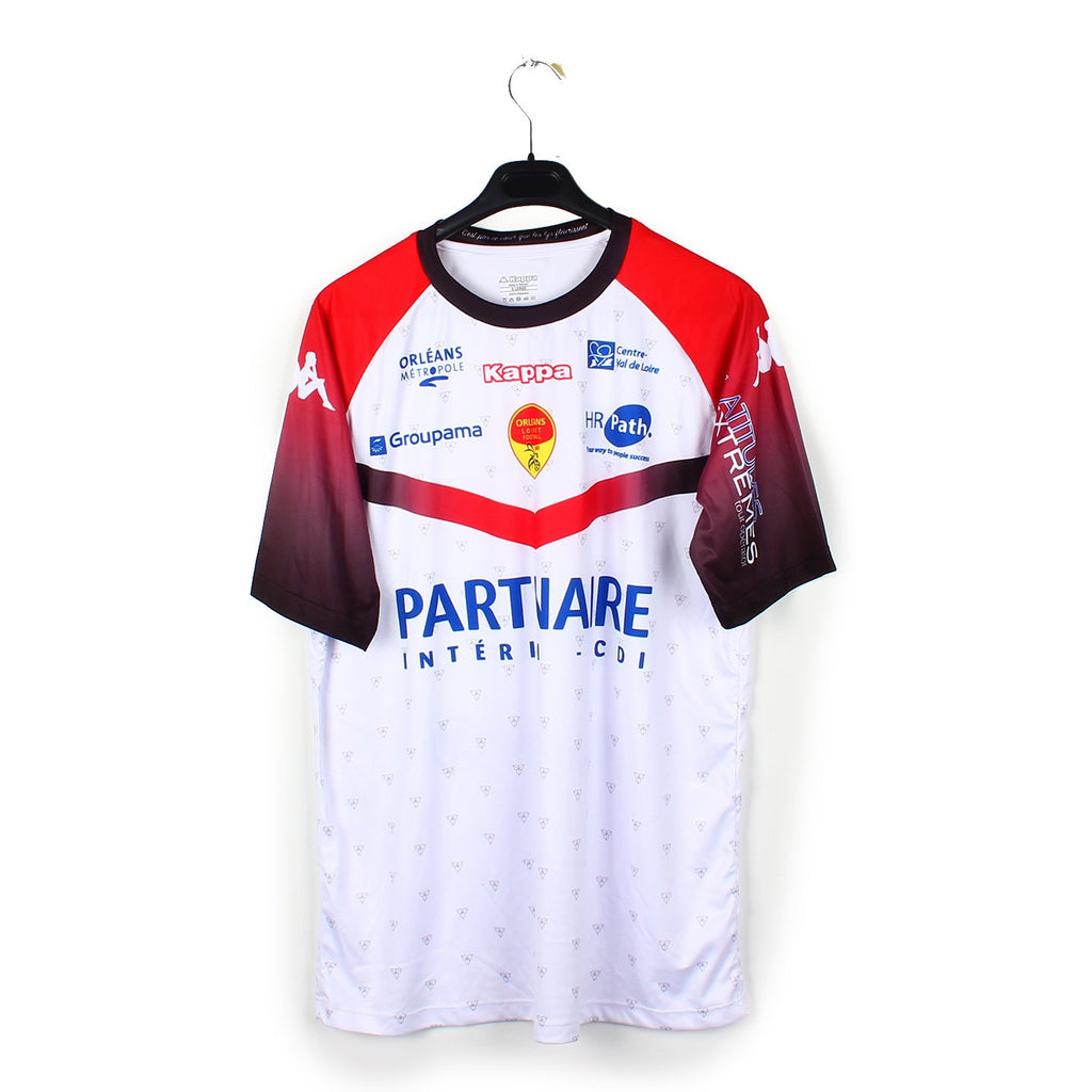Histoire : Maillot extérieur porté par les hommes de Didier Ollé-Nicolle lors d'une saison en Ligue 2 marquée par la pandémie du Covid-19. Après 28 journées, Orléans sera dernier et relégué en National.
