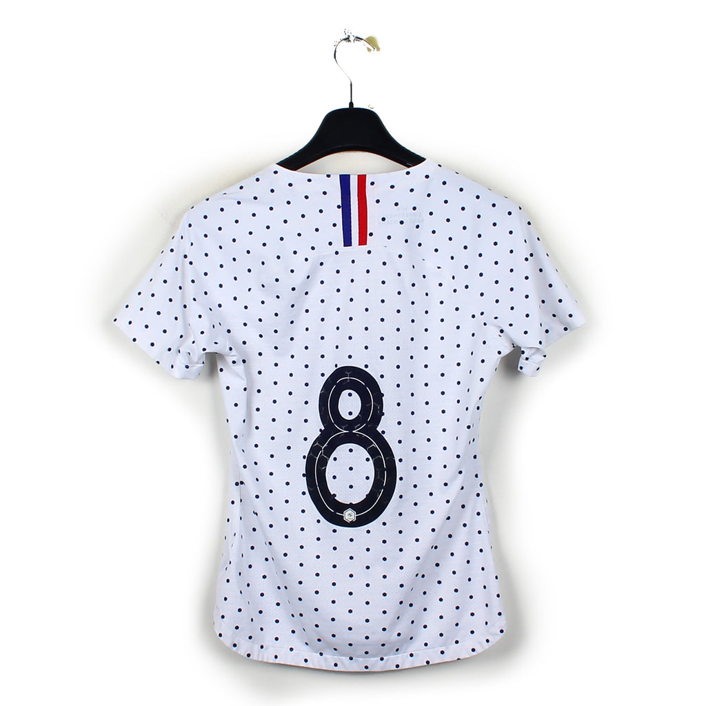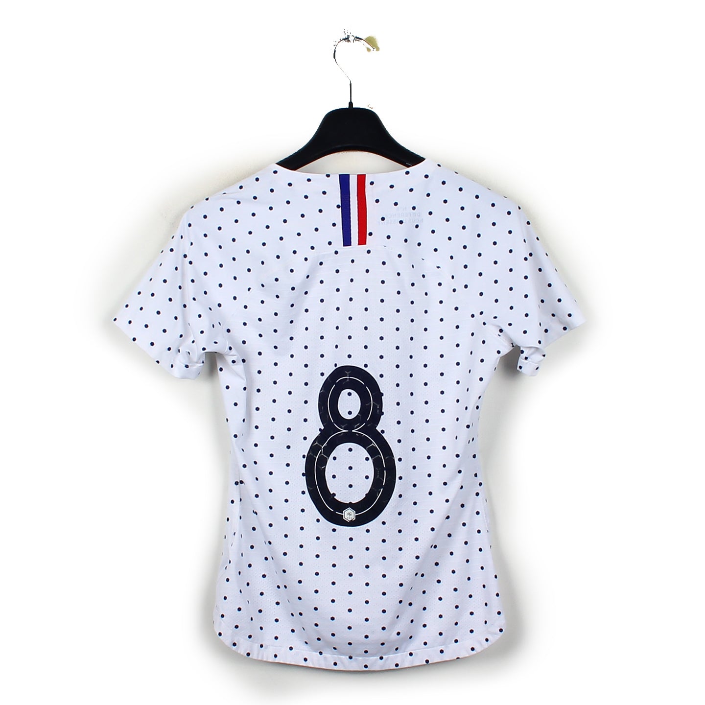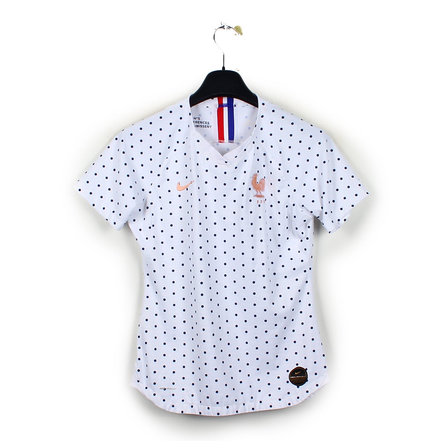Histoire : Maillot extérieur arboré lors de la Coupe du Monde française de 2019. Les Bleues iront jusqu'en quarts où les futures championnes américaines prendront le dessus.