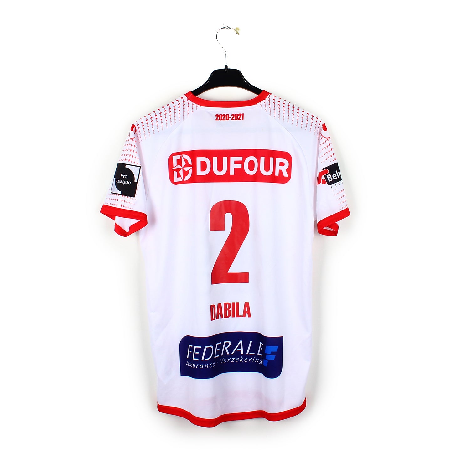 Le maillot en détail : Maillot en excellent état porté/préparé par Kouadio-Yves Dabila en Jupiler Pro League. Tous les éléments sont directement incrustés au tissu, le patch et le flocage joueur sont nickels.