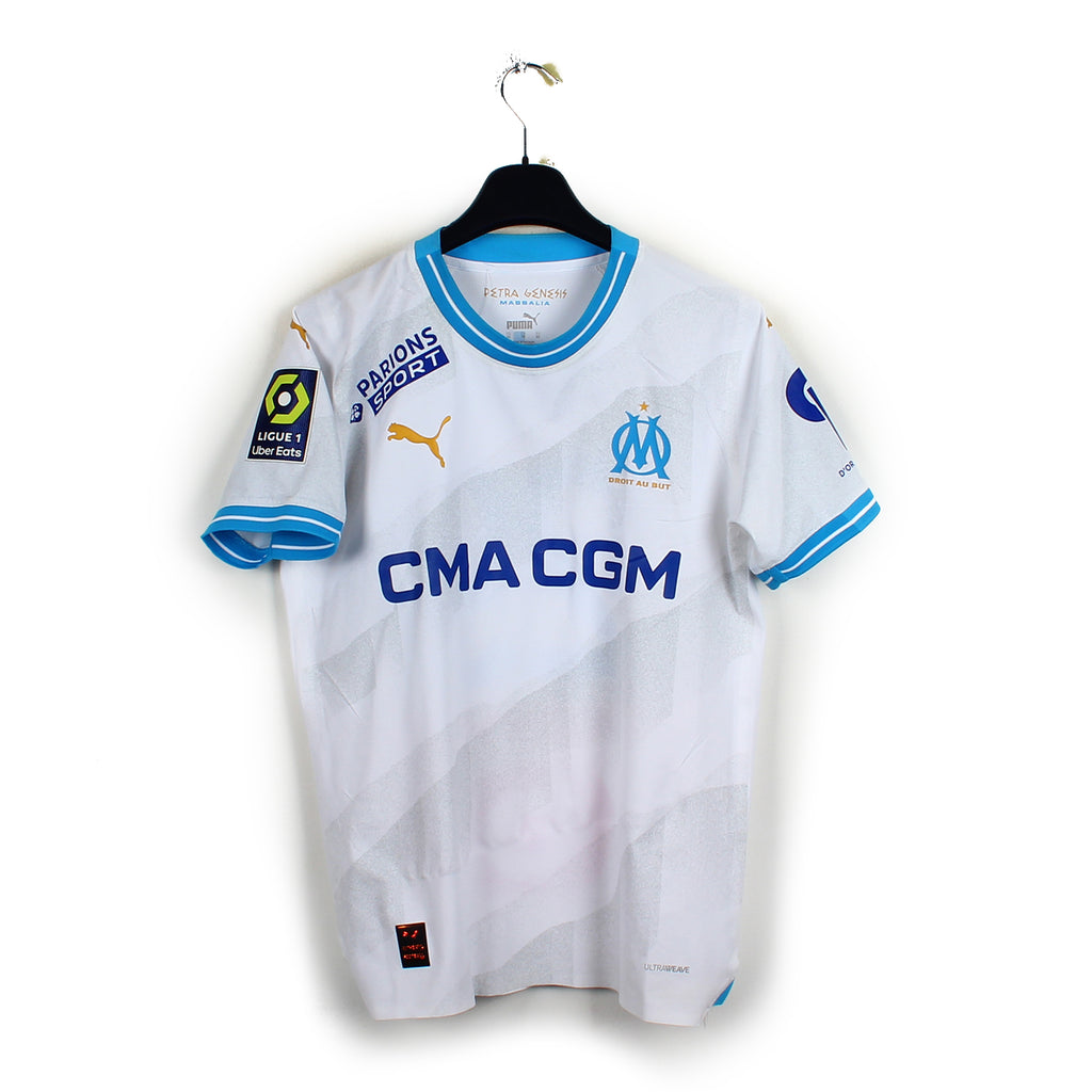 La pièce en détail : Maillot issu du stock professionnel de l'OM en excellent état. L'ensemble des éléments est nickel.