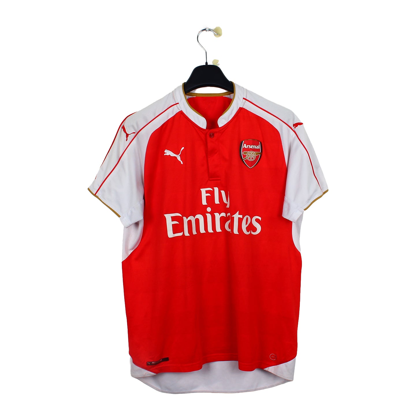 Histoire : Maillot domicile porté par Arsenal lors de la saison qui verra la légende Petr Cech, gardien de but emblématique des rivaux Chelsea, rejoindre le club. Les Gunners, au terme d'une belle saison, ne finiront que second du championnat derrière la surprise Leicester.