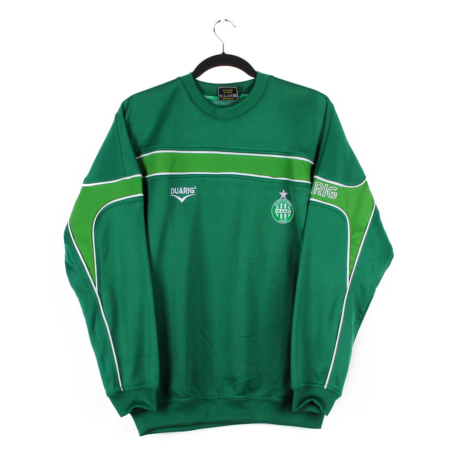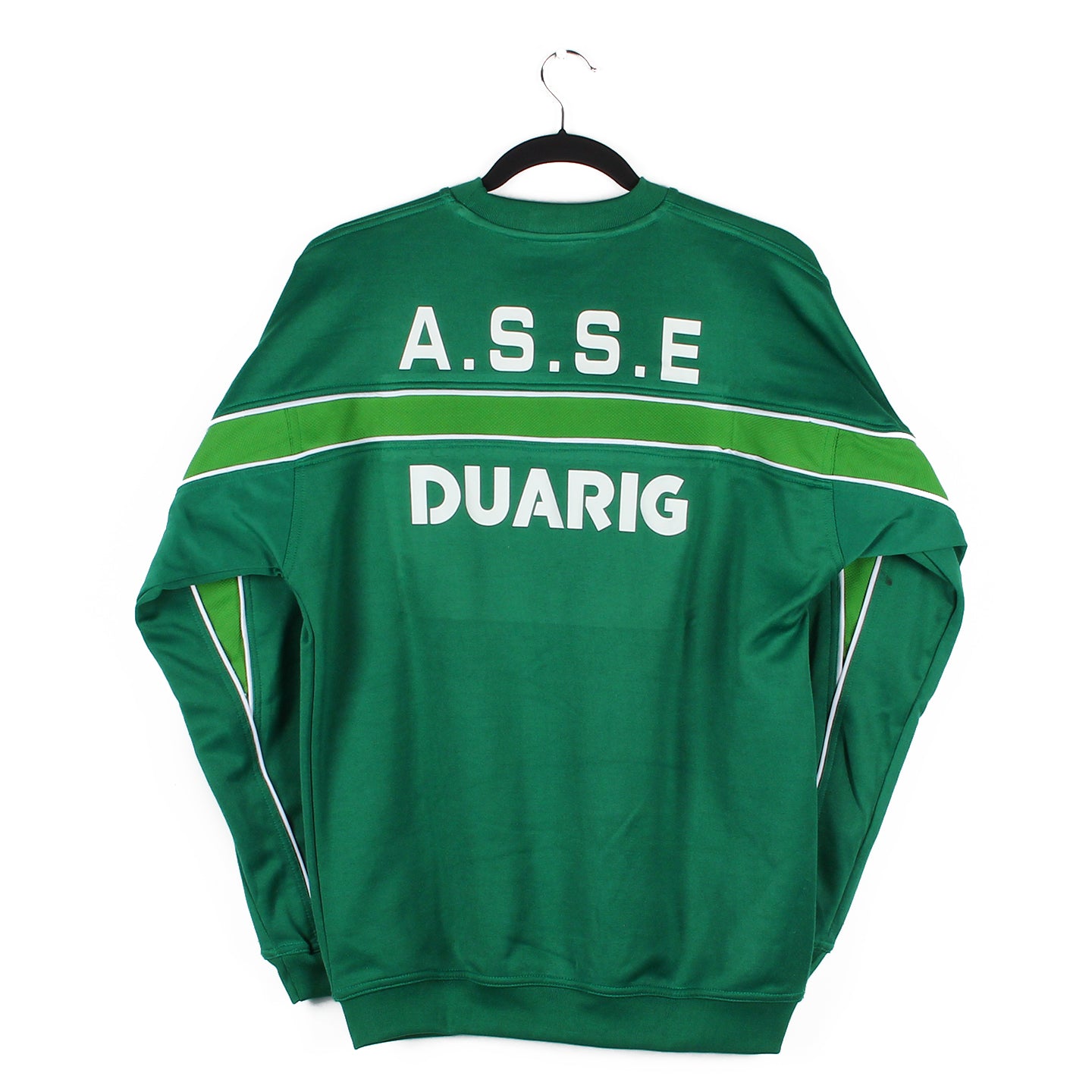 Histoire : Pull d'entraînement porté lors de la troisième saison consécutive des verts en Ligue 2. Saison synonyme de remontée dans l'élite du football français grâce au titre de champion obtenu par les Stéphanois.