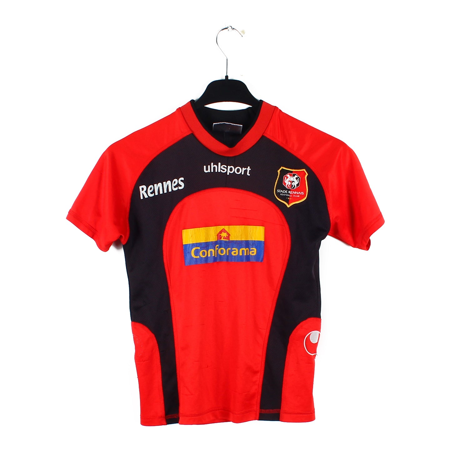 Histoire : Maillot domicile porté lors d'une saison où Rennes terminera neuvième de Ligue 1. Les bretons seront éliminés en quart de finale de la Coupe de France. Le buteur Suisse Frei, finira la saison avec 21 buts.