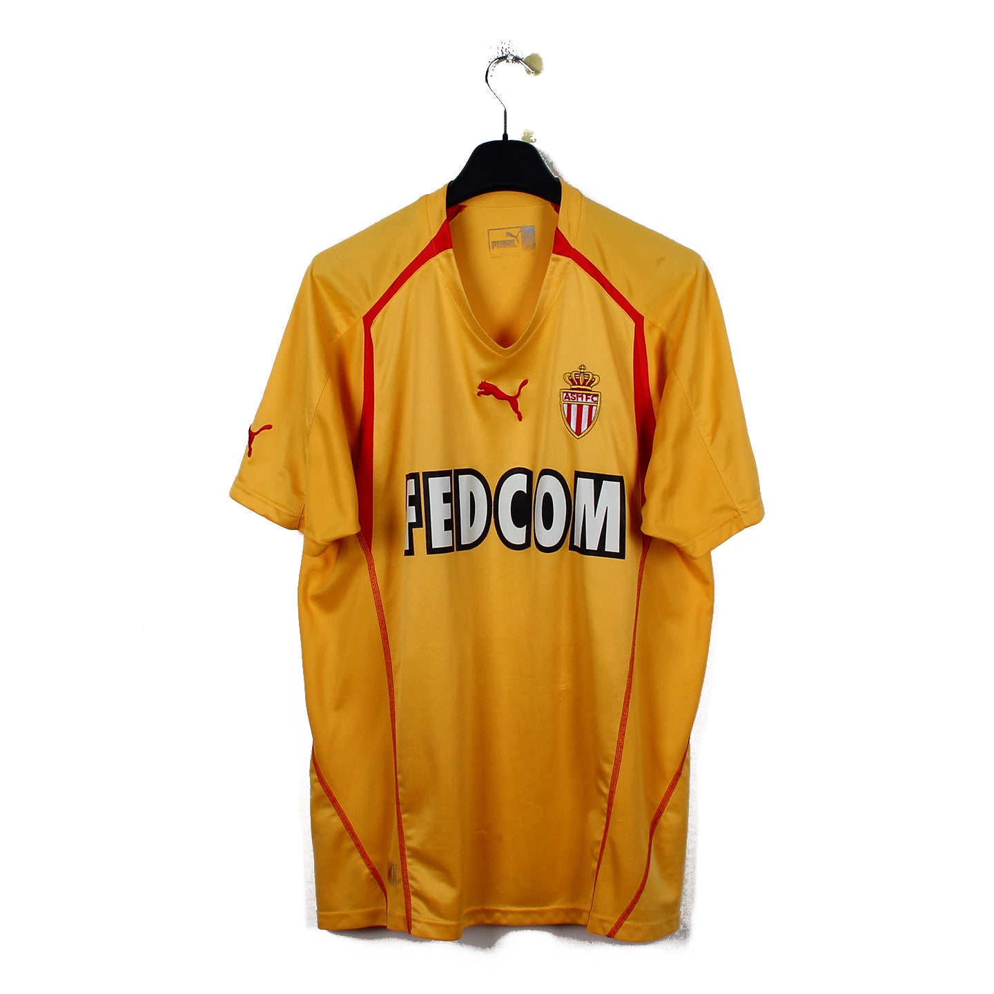Le maillot en détail : Maillot dans une très bonne conservation. Le sponsor floqué est un peu usé, et une tâche est présente sur la face (au bas de la pièce).