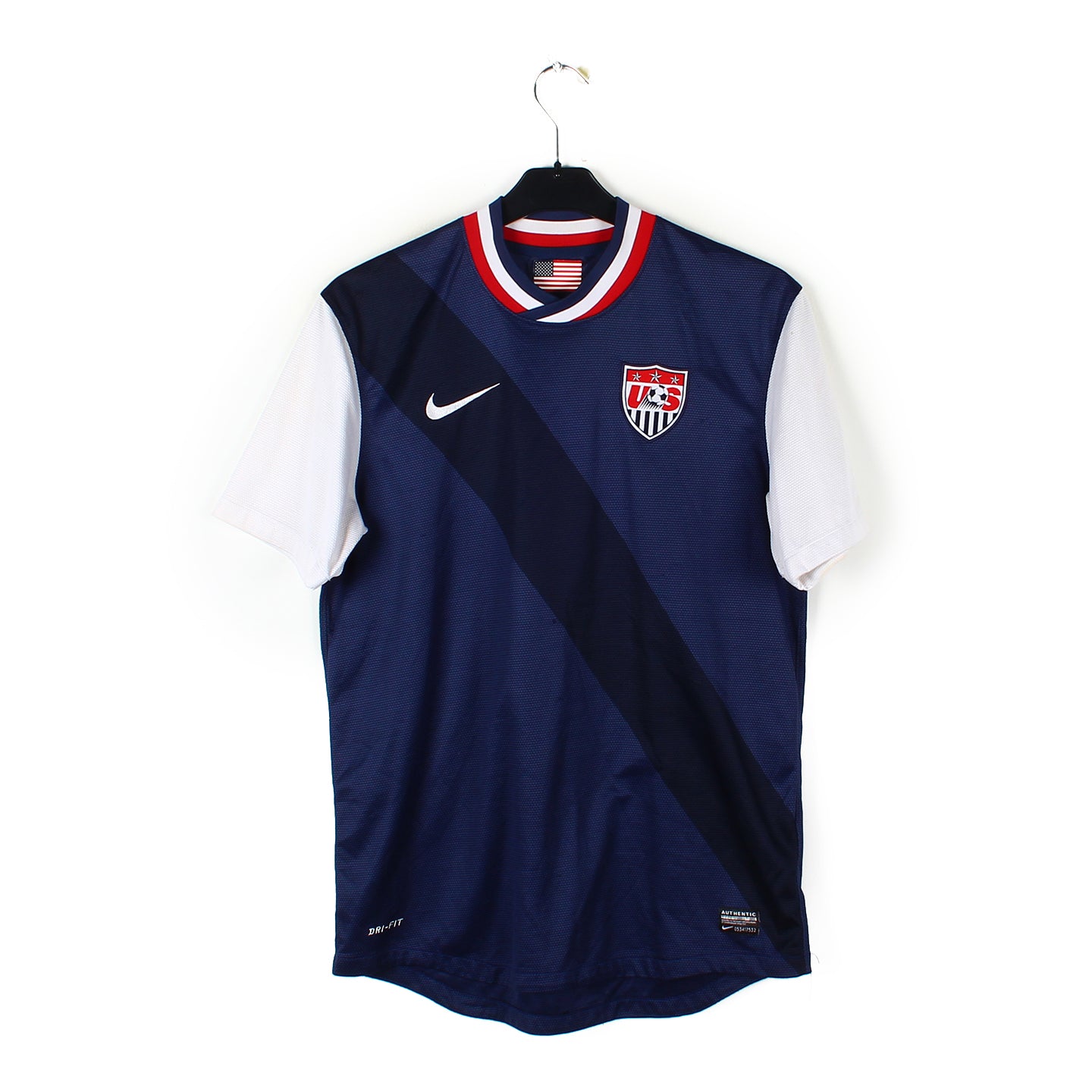 Histoire : Maillot extérieur porté par les américains lors de l'arrivée du tacticien Allemand Jürgen Klinsmann. Malgré des débuts difficiles, les USA obtiendront aisément leur ticket pour le Coupe du Monde 2014 en dominant les qualifications Outre-Atlantique