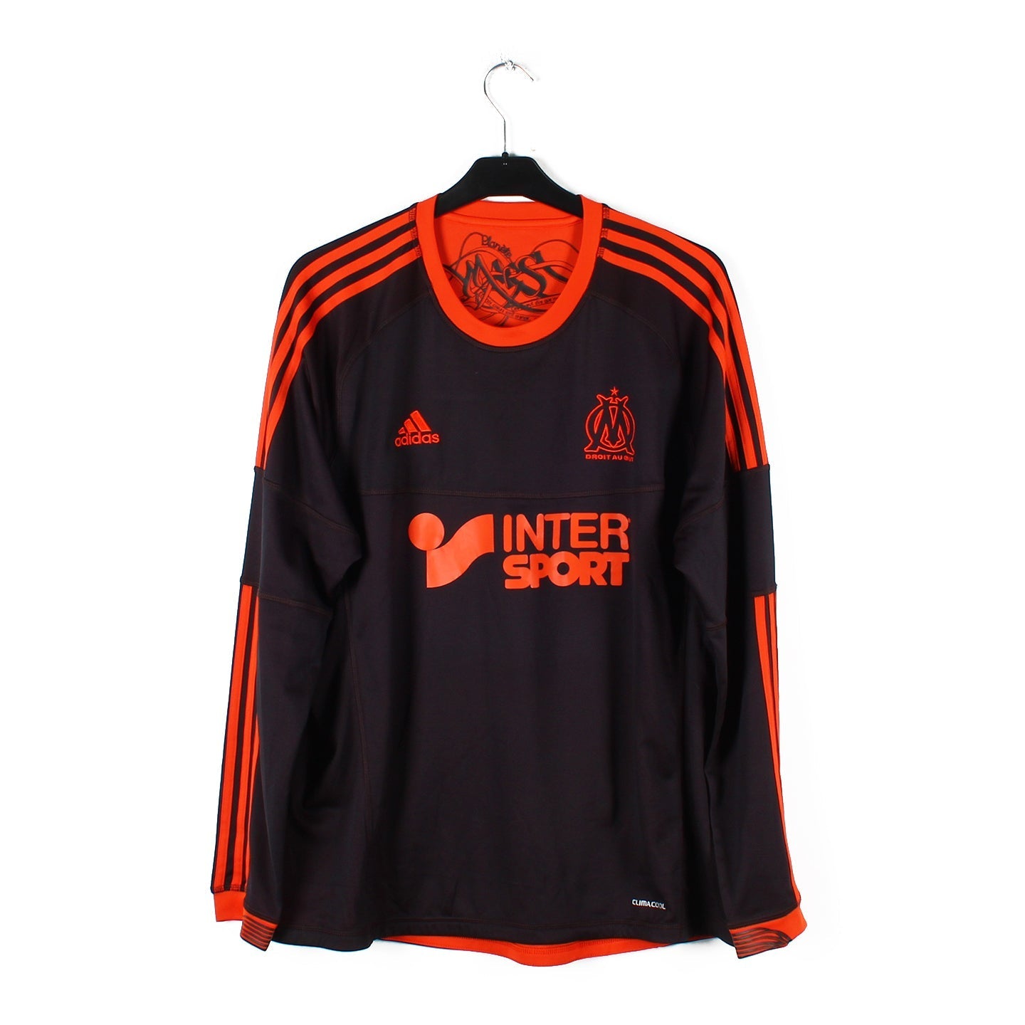 Le maillot en détail : Maillot manches longues réversible en excellent état. Les logos brodés et le sponsor floqué sont nickels.