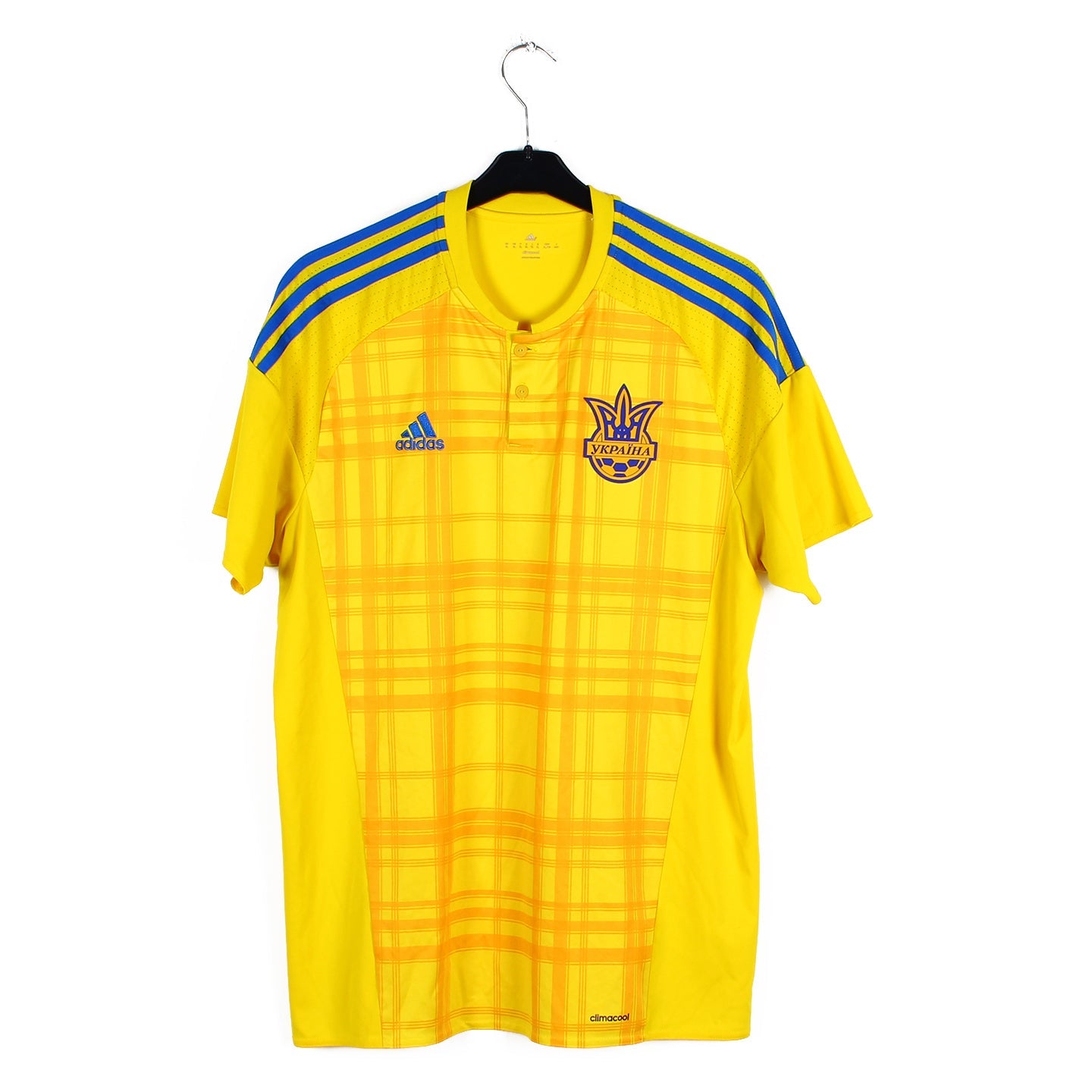 Histoire : Maillot domicile porté par les Ukrainiens lors de l'Euro 2016 organisé en France. Les coéquipiers de Yarmolenko finiront derniers de leur groupe avec 3 défaites contre l'Allemagne, la Pologne et l'Irlande du Nord.