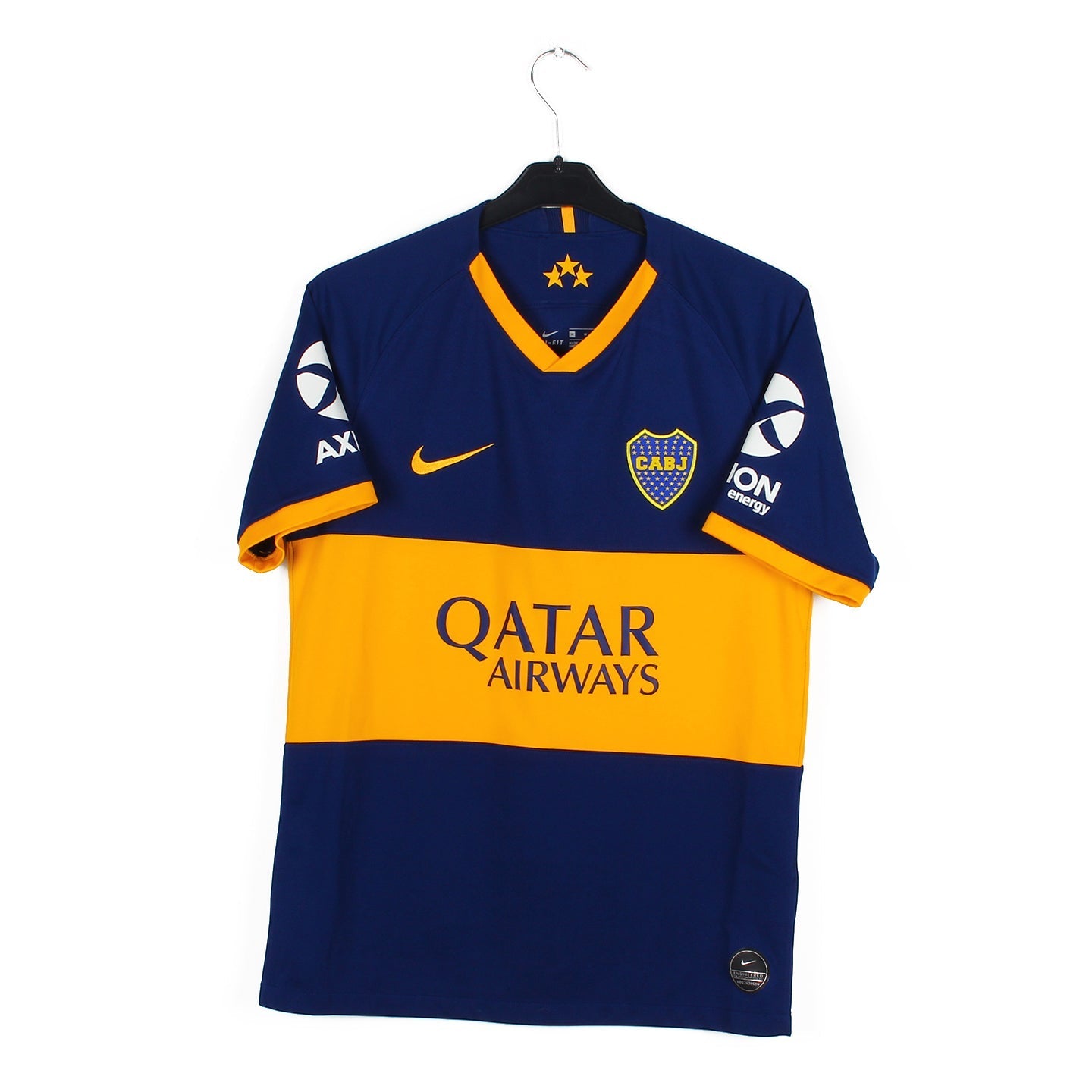 Histoire : Maillot domicile porté lorsque le Boca de Tevez remportera le championnat à un point de River Plate. Le derby tournera en faveur de leurs ennemis lors des demi-finales de Copa Libertadores 2019. Le Boca démarrera le championnat sous Nike et le terminera sous Adidas, équipementier que le club rejoindra début 2020. Daniele De Rossi arrivé à l'été 2019, raccrochera les crampons en janvier 2020.