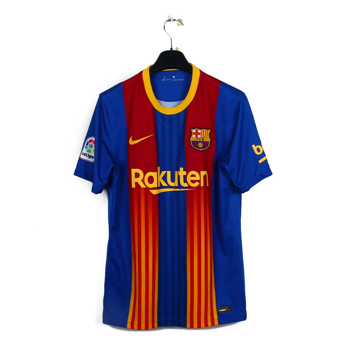 Histoire : Maillot fourth porté par les hommes de Ronald Koeman lors d'une saison à un unique titre : la coupe du Roi gagnée face à l'Athletic Bilbao en finale. Les Blaugrana termineront 3ème de Liga et se feront éliminés par le PSG en huitièmes de finale de la Ligue des Champions, et cela malgré les 38 buts de Messi.